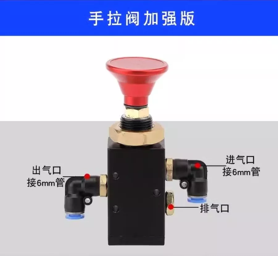 OLK 3 жолында 5way Red Specue Stop клапаны - бұл төтенше жағдайлар кезінде ауа жеткізілімін тез өшіру үшін қолданылатын қауіпсіздікті басқару компоненті. Ол автоматтандырылған жабдықтарда, өндірістік желілерде және қауіпсіздікті қорғауды қажет ететін пневматикалық жүйеде кеңінен қолданылады. Егер қалыптан тыс жағдай пайда болған кезде немесе жабдықты дереу тоқтату керек болған кезде, ауа массасын бірден кесіп, персоналдың да, жабдықтың да қауіпсіздігін қамтамасыз етіңіз.
