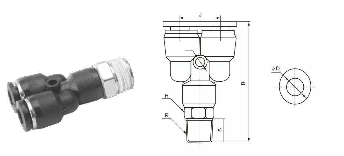 PX y Type Type Type Tube Facting - бұл қосуға арналған дизайн. Және ауа жолының негізгі жолы тікелей байланысты. Жалпы, газ бөлу немесе пневматикалық жүйелердегі қосалқы құбырлар үшін қолданылады.