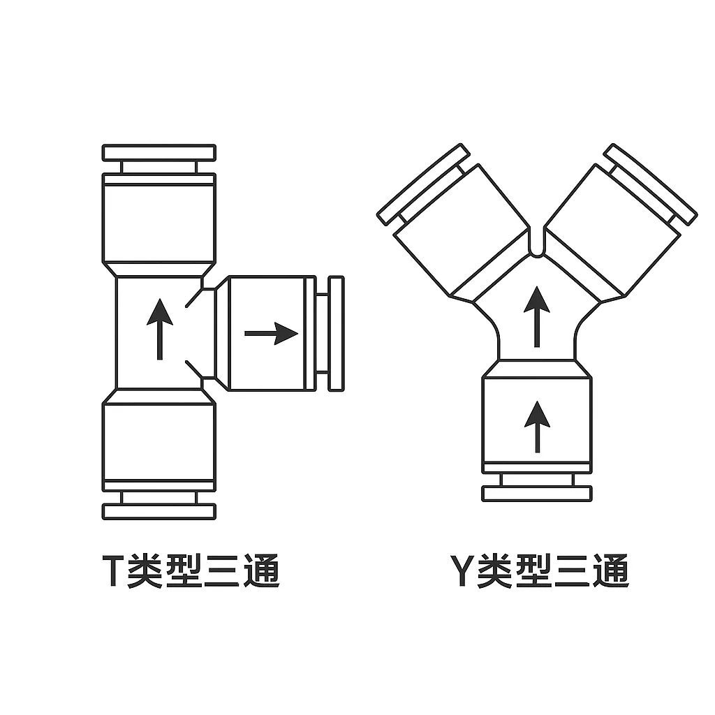 T-тәрізді пневматикалық фитингпен салыстырғанда, у тәрізді ауа коннекторы