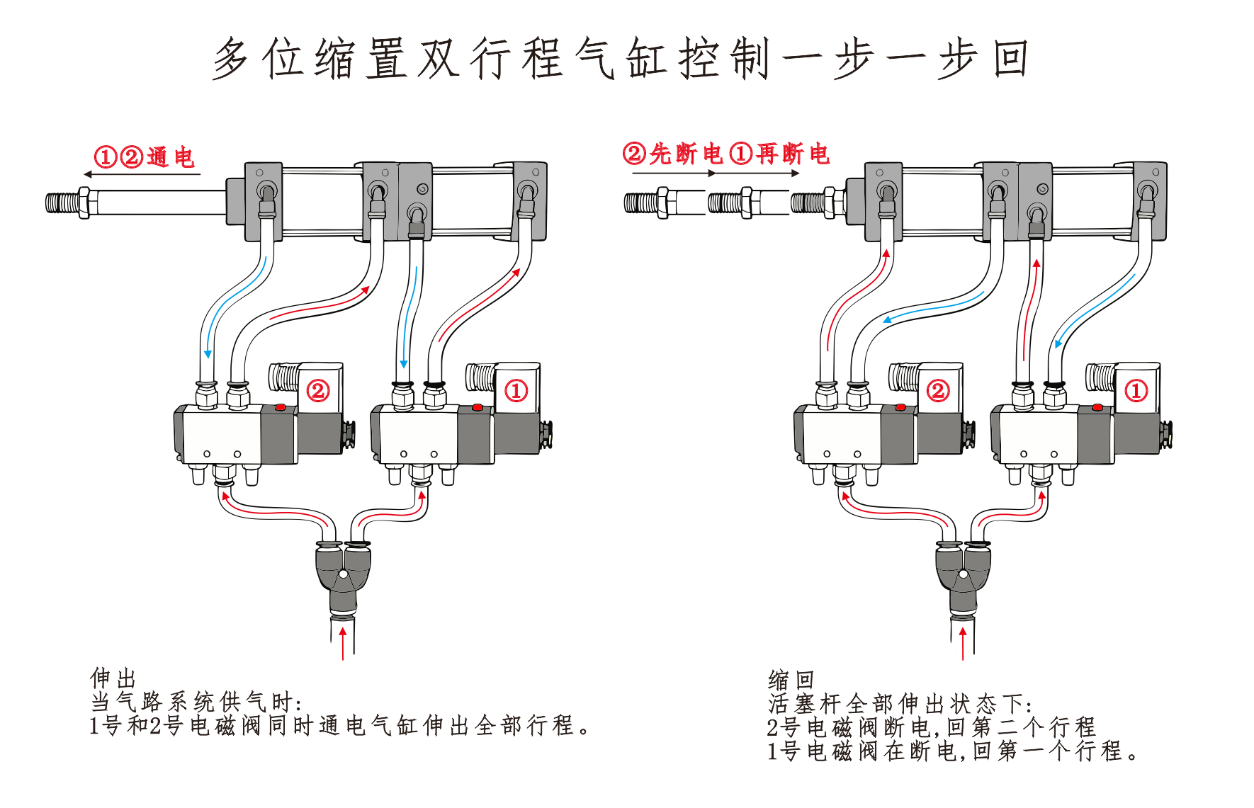 Көп позициялық цилиндрлерге арналған пневматикалық бақылау схемалары